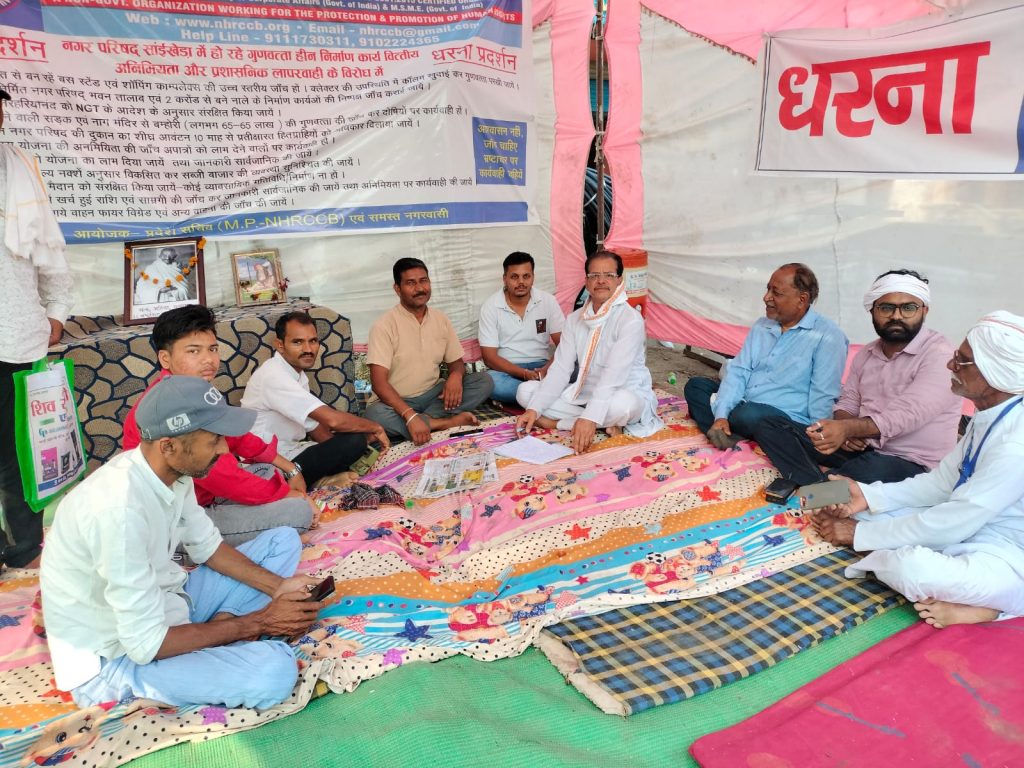 MP संवाद समाचार, नरसिंहपुर। गाडरवारा के साईंखेड़ा नगर परिषद में विकास कार्यों को लेकर कथित भ्रष्टाचार, वित्तीय अनियमितताओं और घटिया निर्माण के विरोध में मंगलवार से धरना प्रदर्शन शुरू हो गया। आंदोलन का नेतृत्व रंजीत सिंह तोमर (प्रदेश सचिव, मध्यप्रदेश राष्ट्रीय मानवाधिकार एवं अपराध नियंत्रण ब्यूरो) कर रहे हैं, जिसमें बड़ी संख्या में नागरिक, पत्रकार और सामाजिक कार्यकर्ता शामिल हुए।